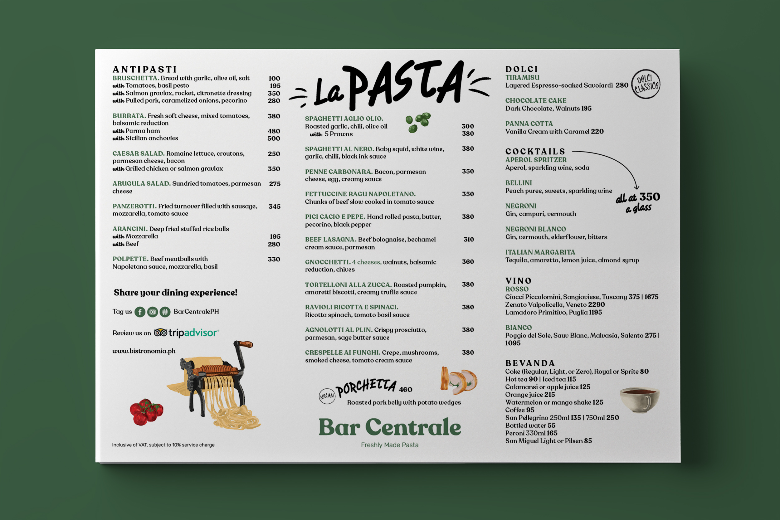 Bar Centrale is the first branding project I handled as an in-house graphic designer. I designed the brand with the keywords fresh and homemade from scratch, so the logo and elements are my hand drawing.