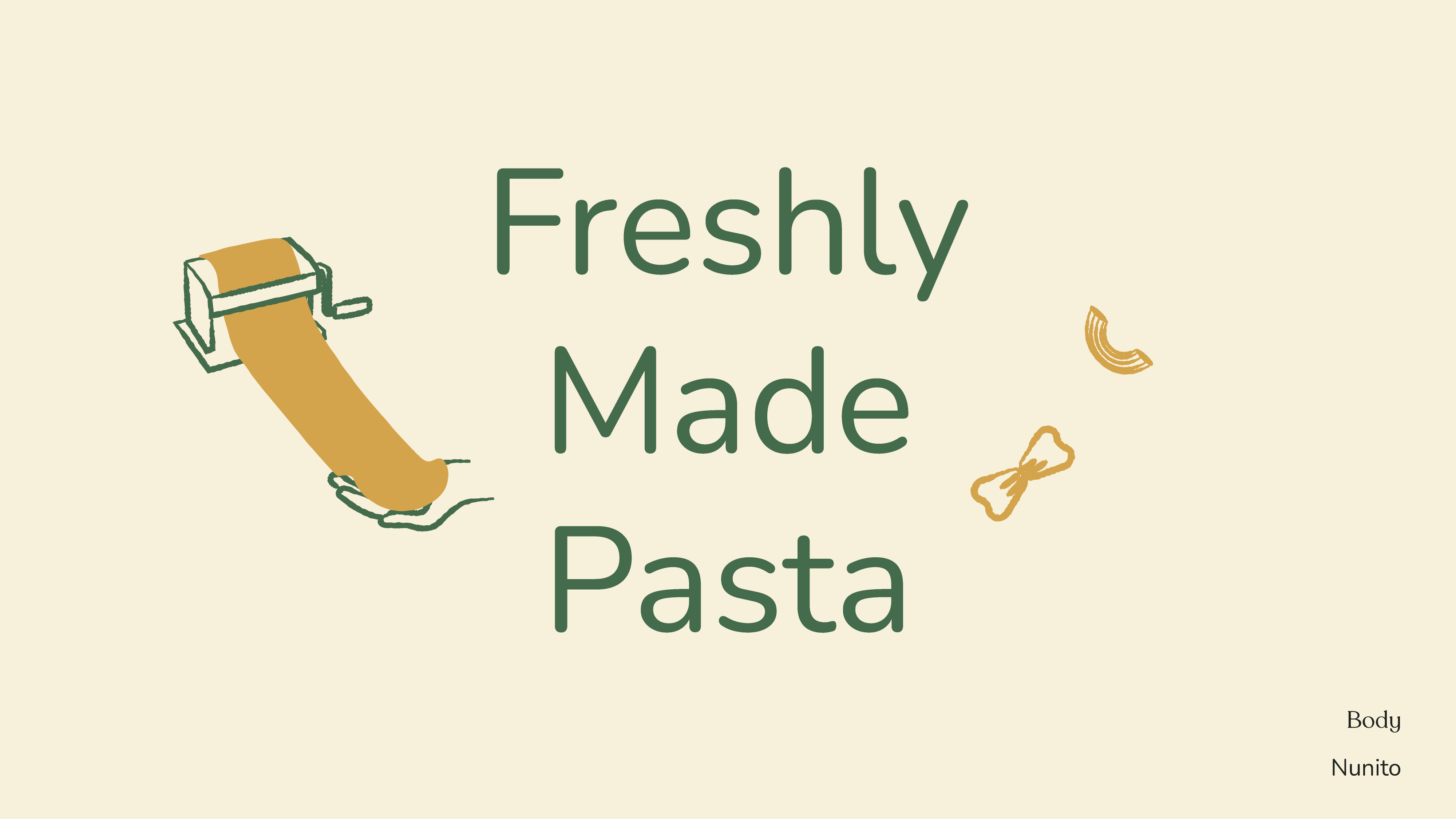 As it is an Italian restaurant, I strayed away from using the colours of the Italian flag. I used green as primary, yellow gold for pasta colour, off-white and black for neutrals.