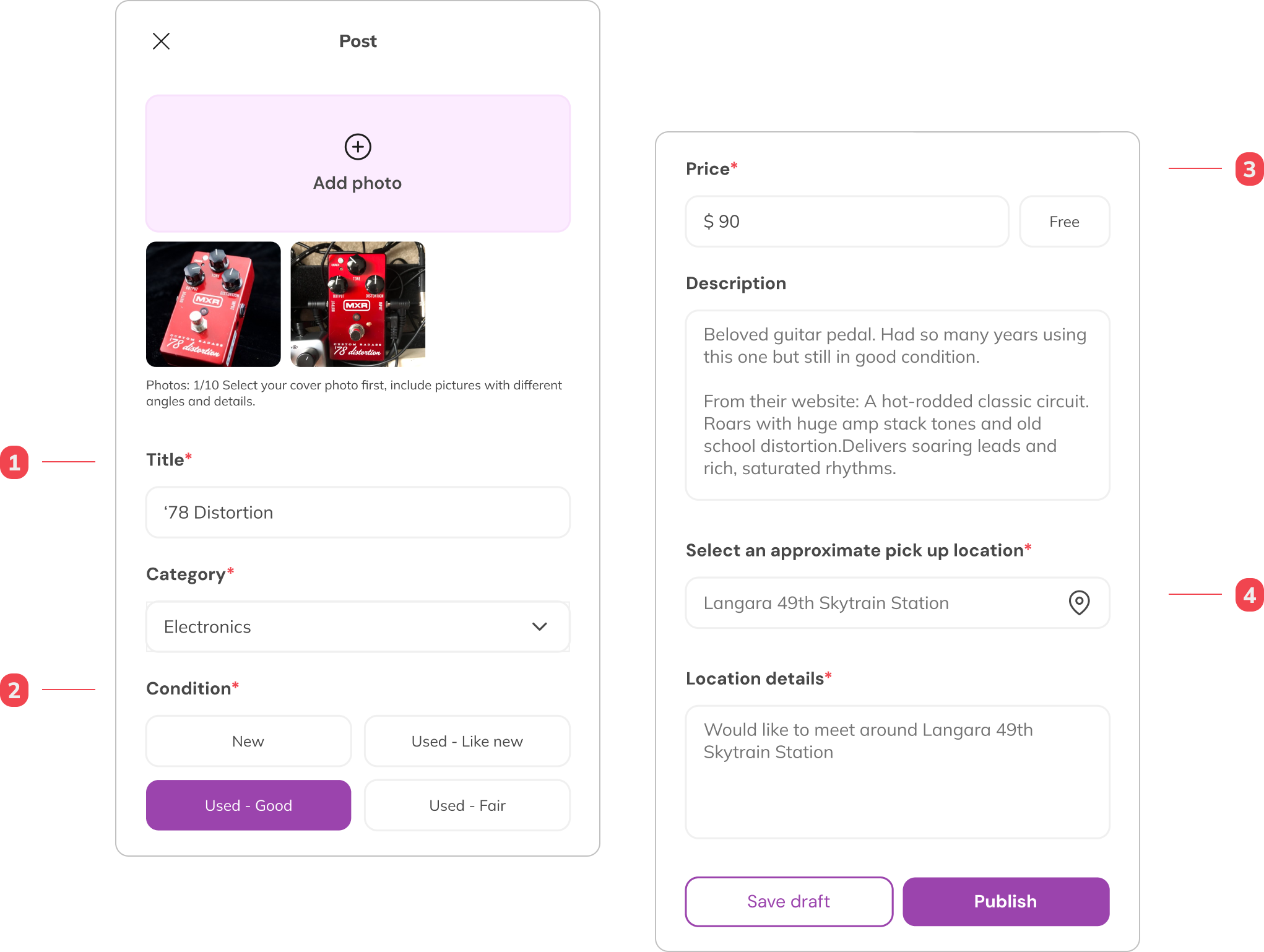 - Users can tag their item condition from the four options provided