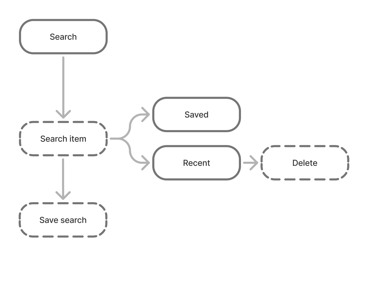 - Users can access their saved searches in the search bar under the "Saved" tab. They also have the option to delete a search directly from this tab