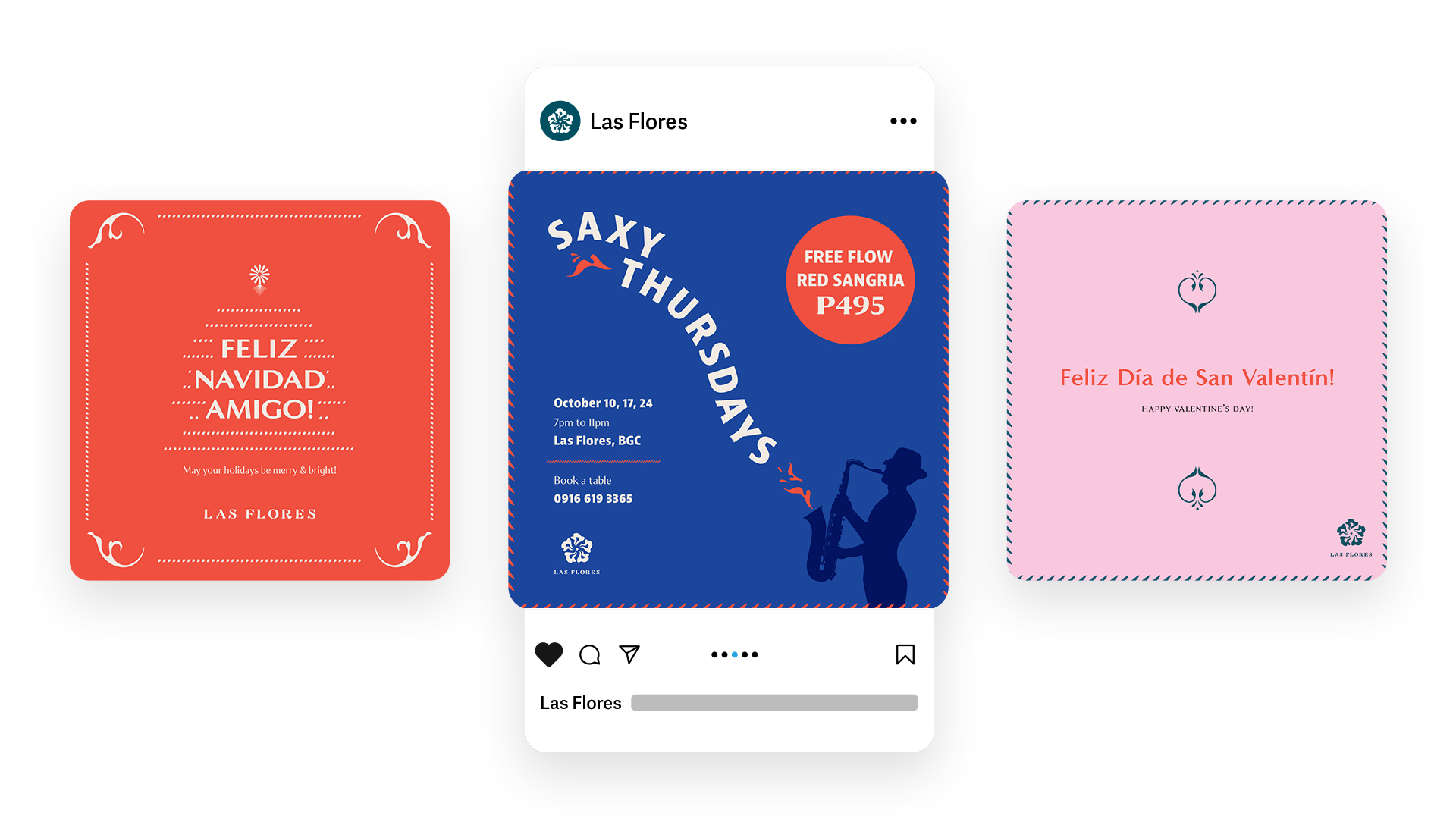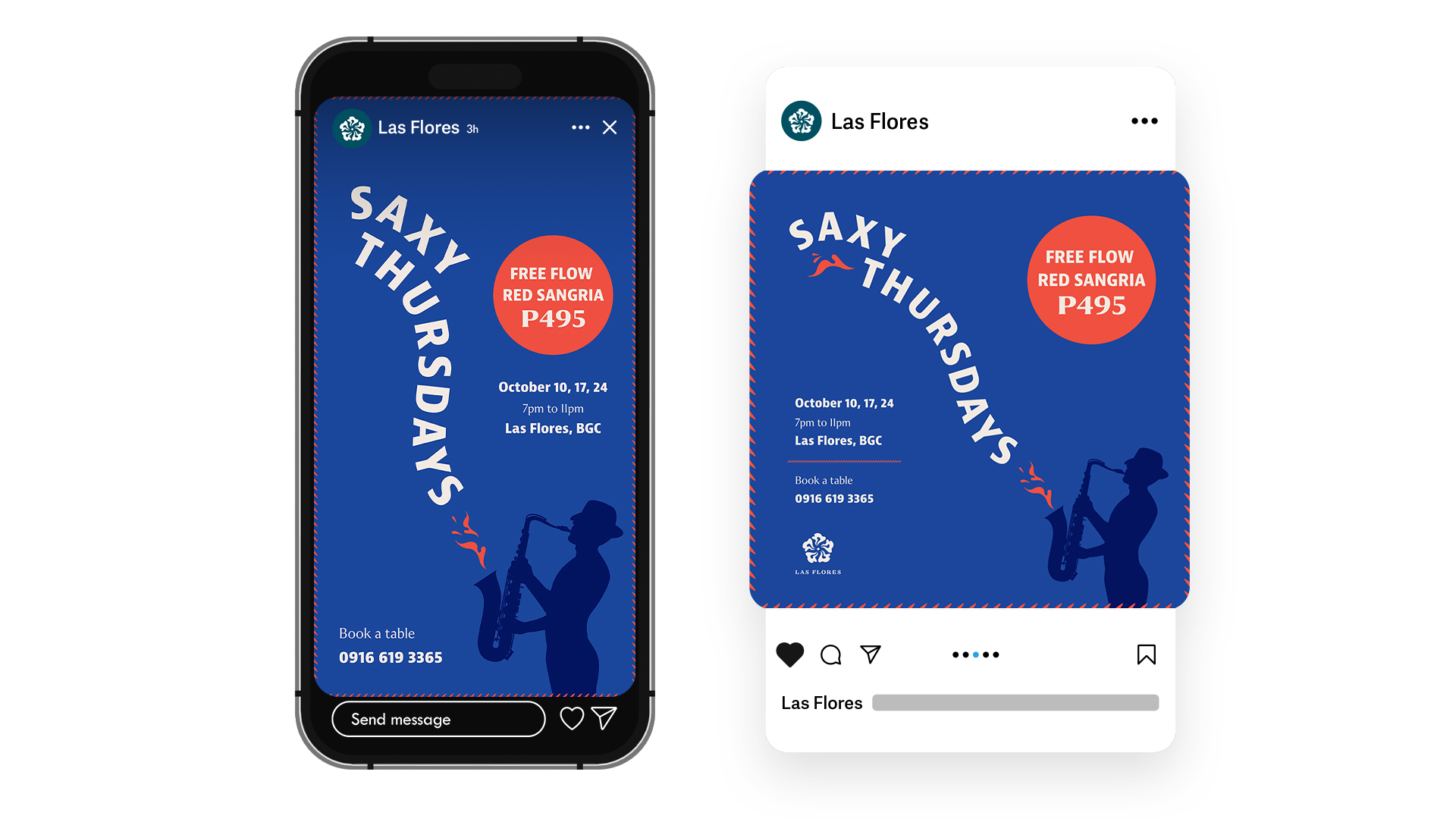 At Las Flores' flagship restaurant in Bonifacio Global City, Taguig, there were weekly events, one of which was Saxy Thursdays. A saxophone player was invited to create a better ambiance and enhanced dining experience. Vector graphics were usually used to promote the event when no supplied photos of the artist are available.