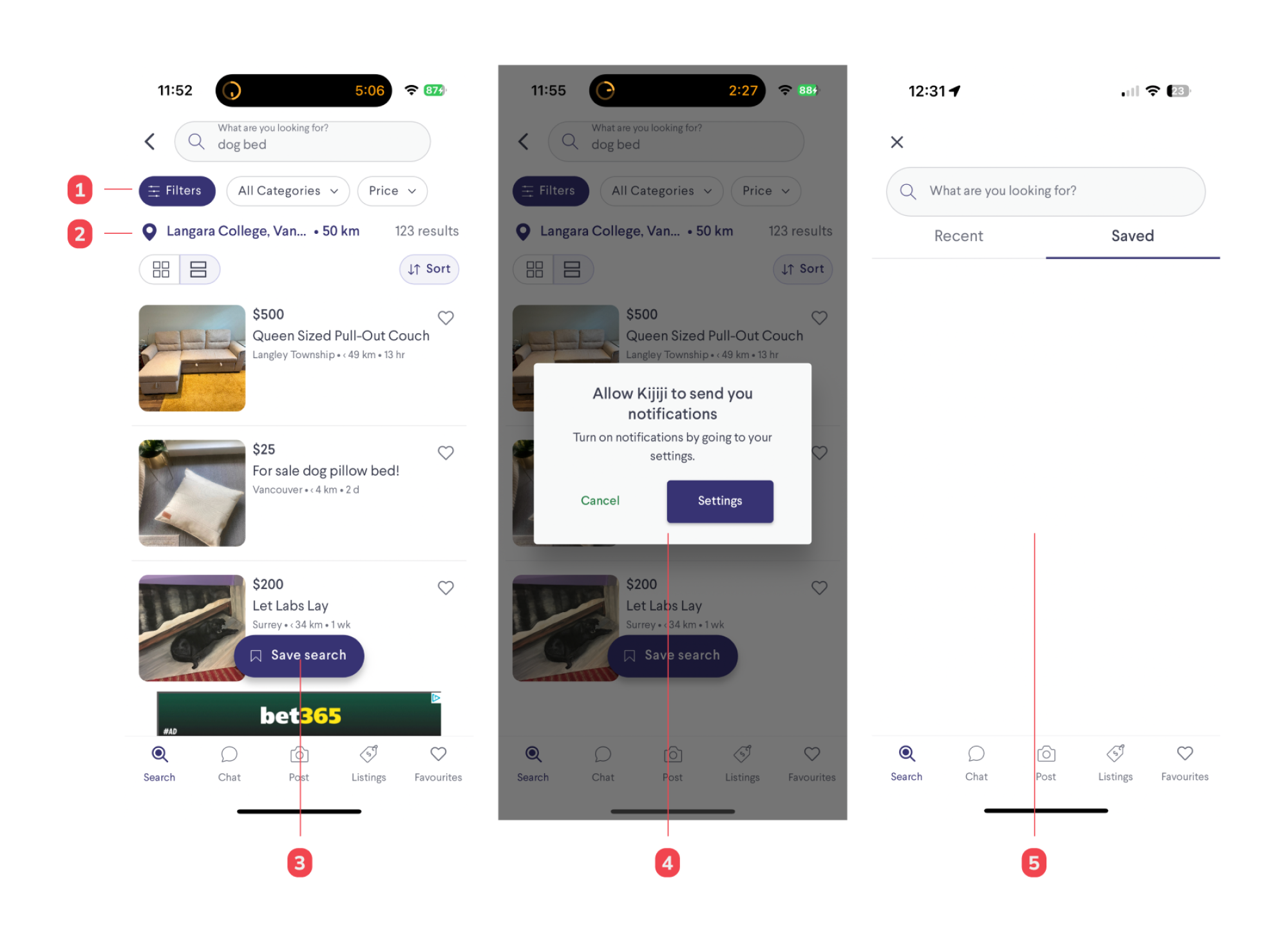 - Unless the users change their notification settings in their phones, their search will not be saved
