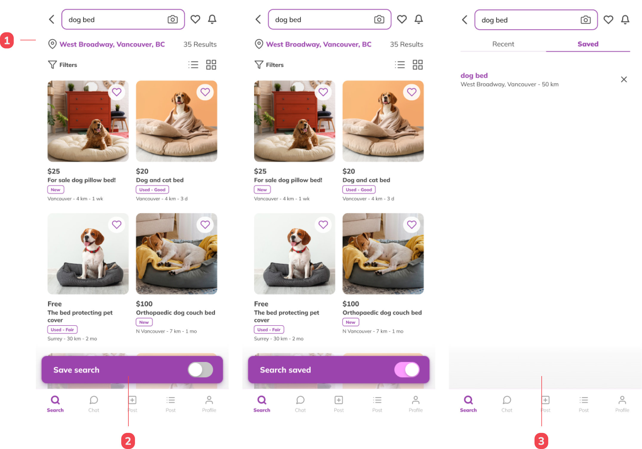 - Save button is barely seen against the listing or ads posted