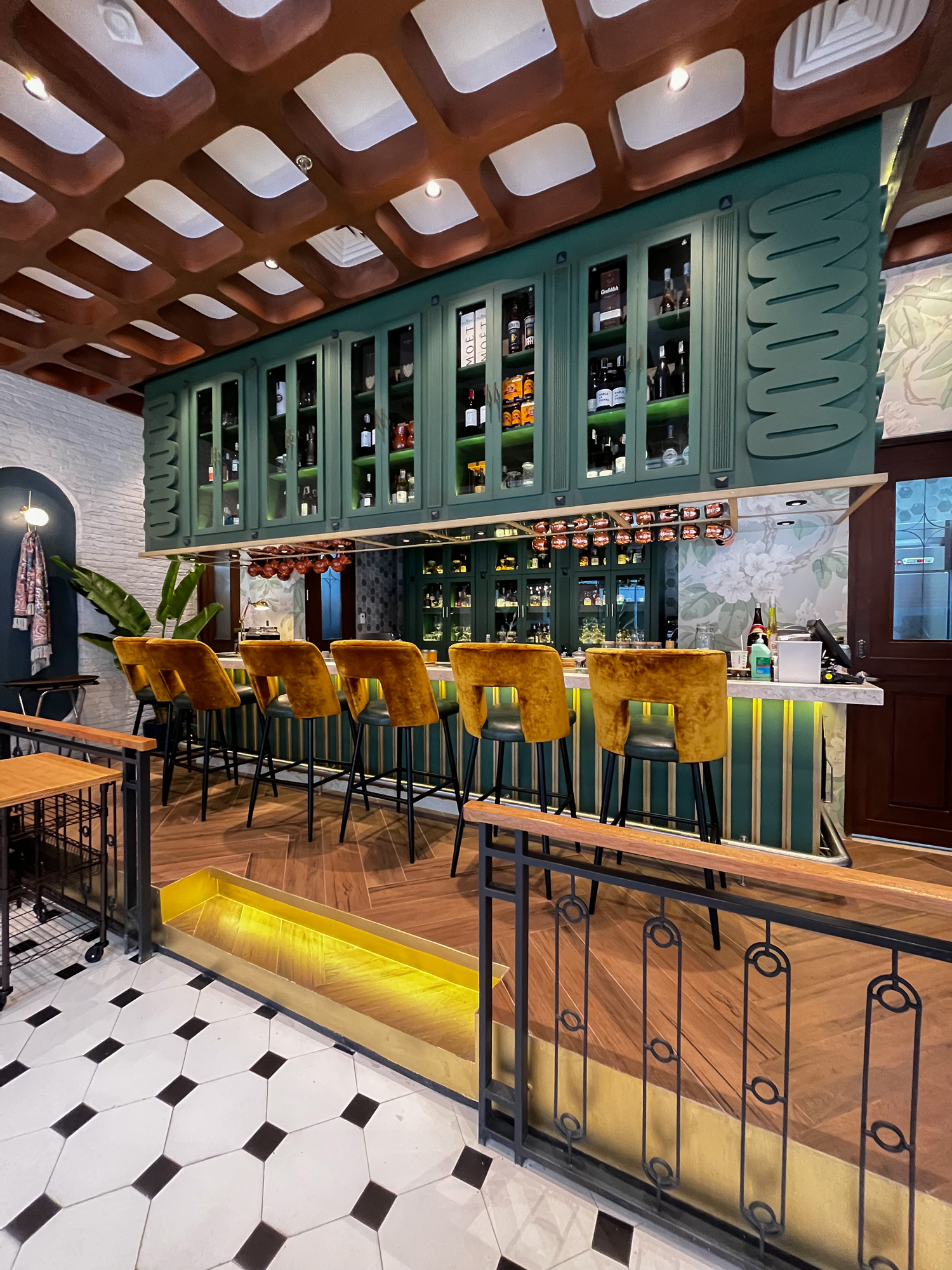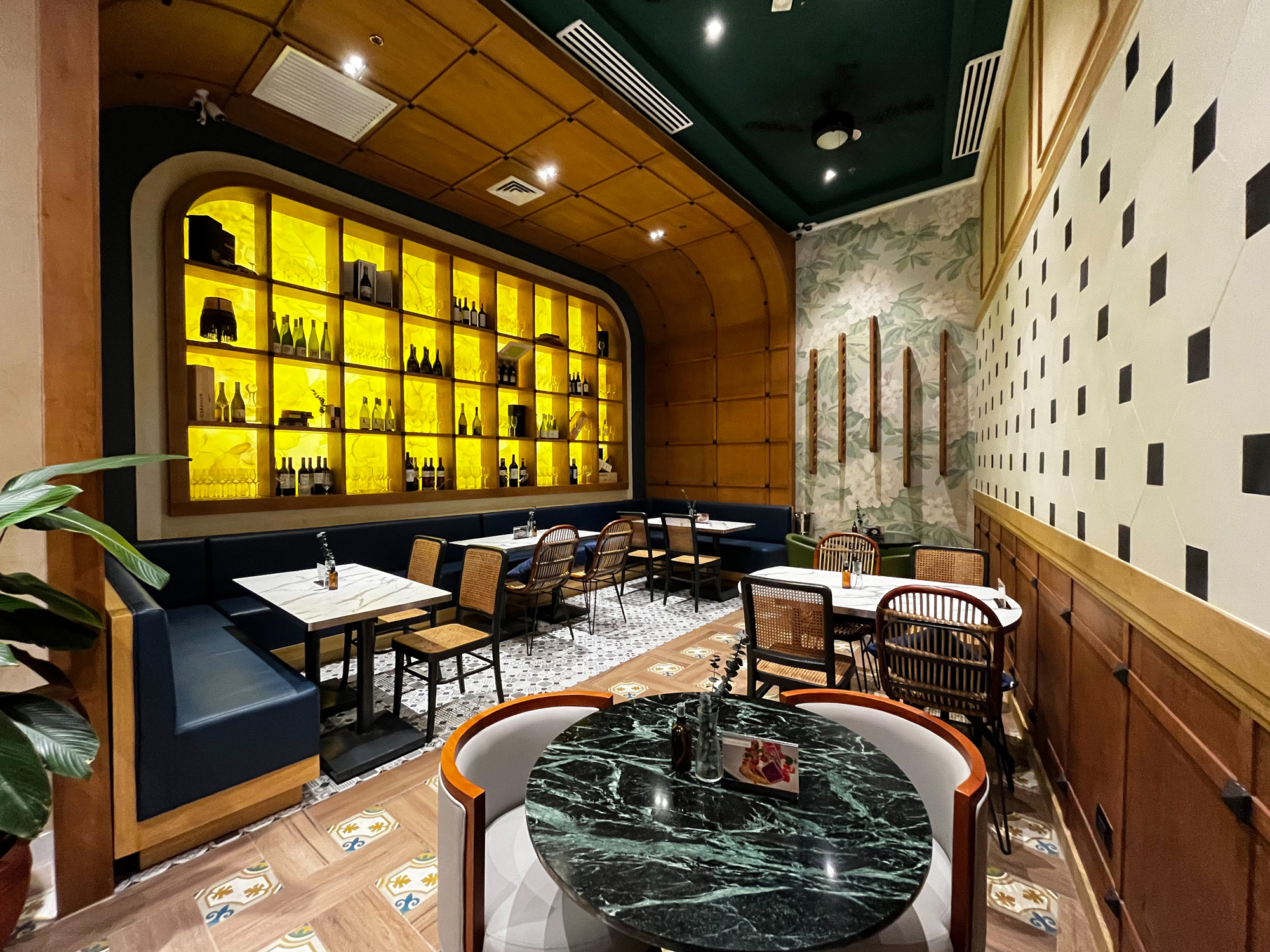 I used green shades to replicate the restaurant's interiors, mixing in yellow/gold for a premium feel.