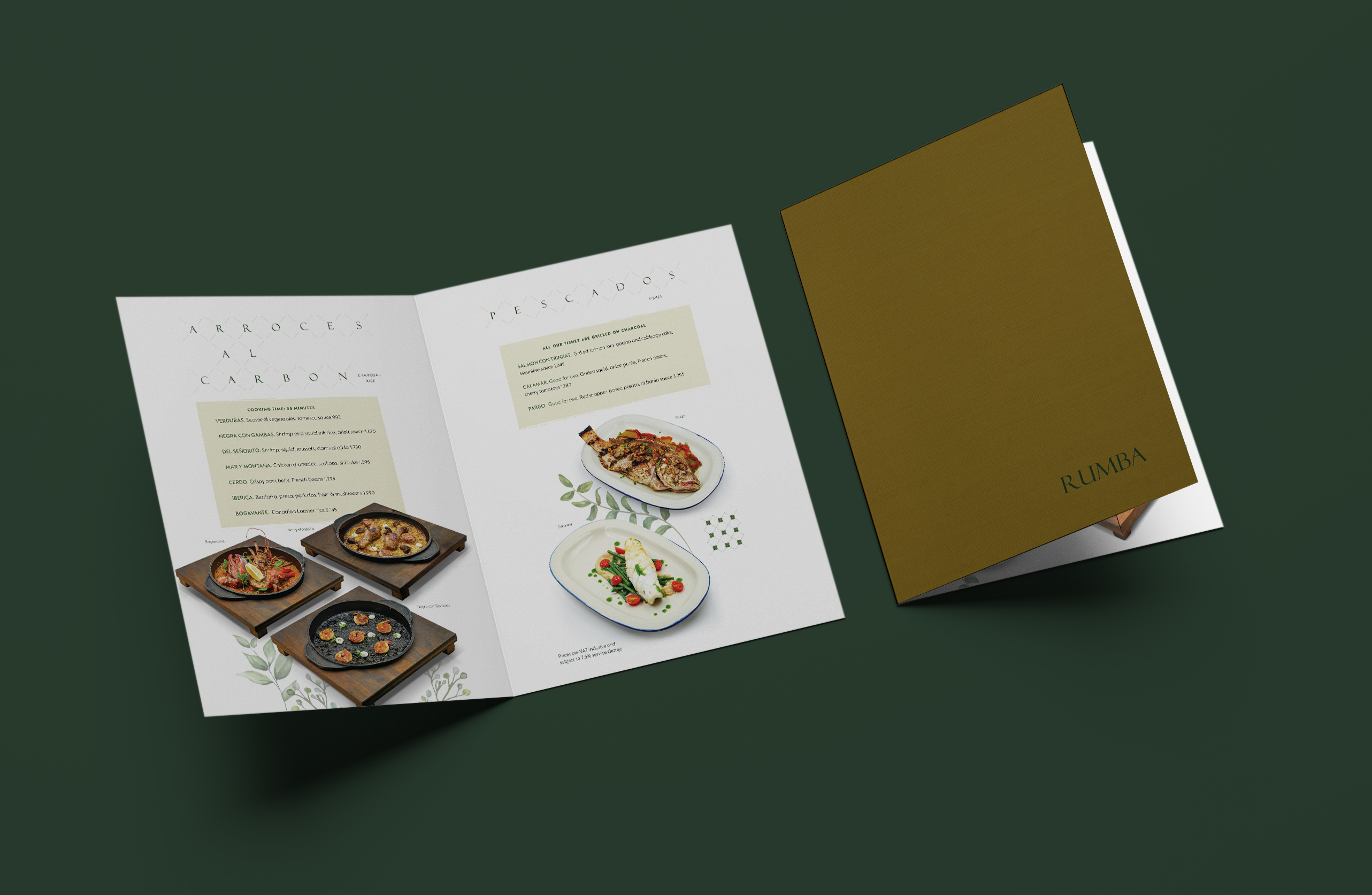 For added visual appeal, textured elements, floral illustrations, and Spanish-inspired tile design are used with Rumba's collaterals.