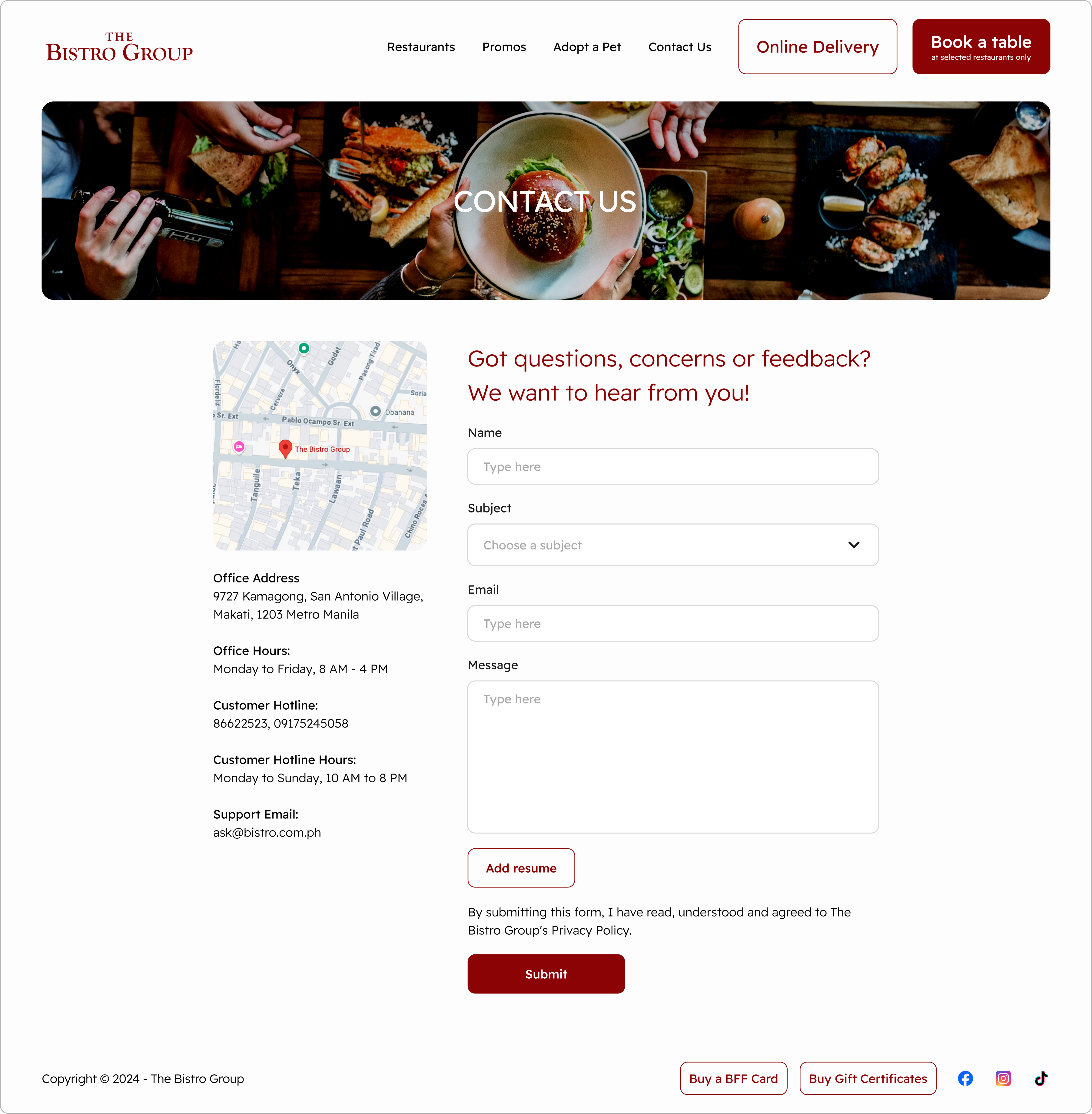 The Bistro Group is a collection of international hospitality casual dining brands and homegrown concepts in the Philippines.