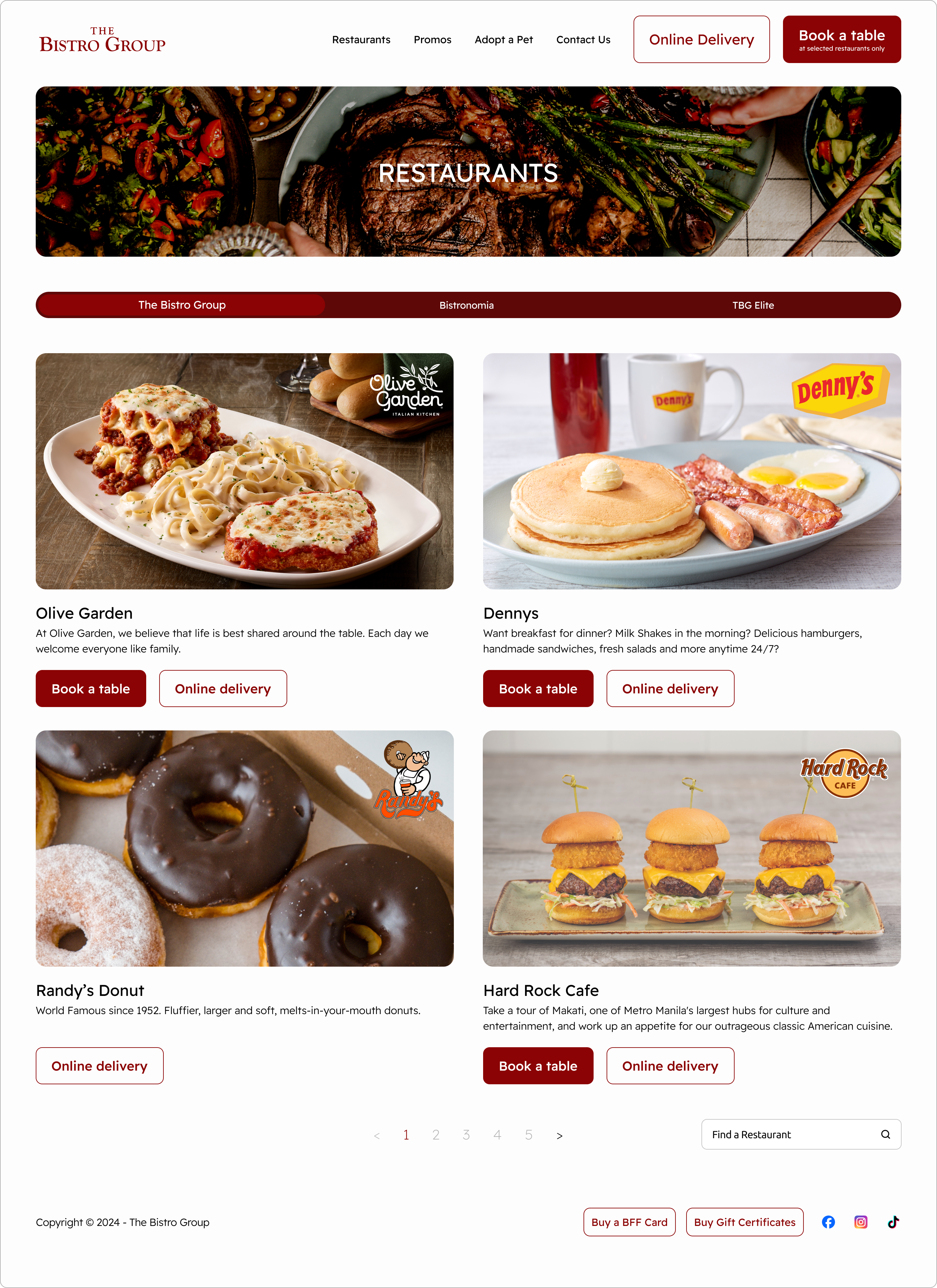 - Seeing more than three items in the gallery can be boring and make it difficult to find specific details, so I recommend splitting the sections into three categories (The Bistro Group, Bistronomia, TBG Elite) using tabs.